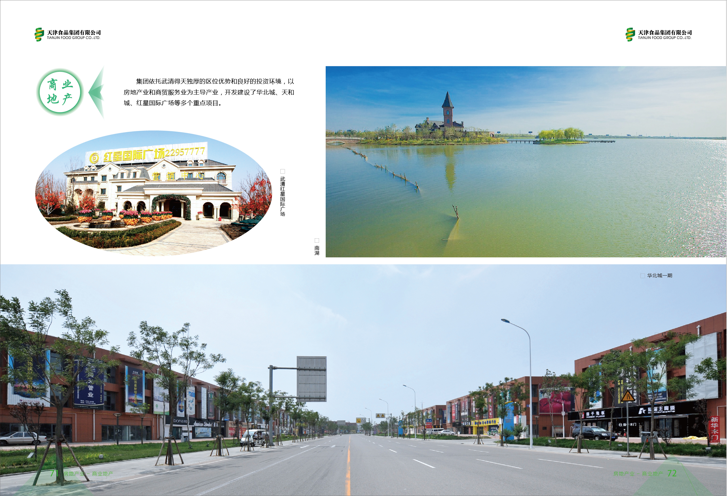 The Group fully utilizes the unique geographical advantages and favorable investment environment in Wuqing District. Oriental Industry Co., Ltd. actively carries out primary land development, builds a Beijing-Tianjin tourism town, and turns the Nanhu Green Expo Park into a beautiful landscape on the Beijing-Tianjin-Hebei corridor. At the same time, directed by the real estate industry and trade services, the Group launches many key projects such as the North China City and Red Star International Plaza.