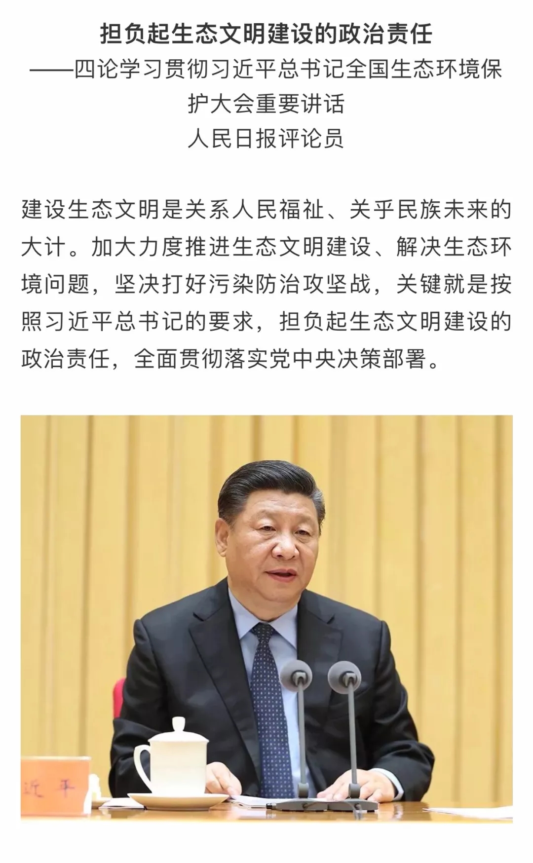 人民日報評論員:三、四論學(xué)習(xí)貫徹習(xí)近平總書記全國生態(tài)環(huán)境保護大會重要講話