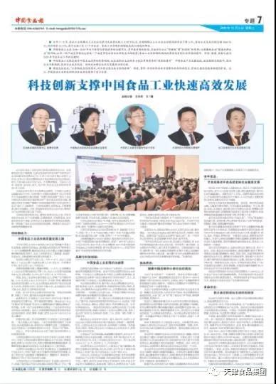 《中國(guó)食品報(bào)》昨日頭版在《秋糖會(huì)給天津食業(yè)帶來了什么?》報(bào)道中,在分析此次糖酒會(huì)給天津市帶來的影響時(shí),對(duì)集團(tuán)在糖酒會(huì)中參與的各項(xiàng)工作進(jìn)行了全面介紹;第7版整版篇幅,以《科技創(chuàng)新支撐中國(guó)食品工業(yè)快速高效發(fā)展》為題,深度報(bào)道了此次由集團(tuán)和市食品工業(yè)協(xié)會(huì)主辦的“天津食品行業(yè)高質(zhì)量發(fā)展高峰論壇”的詳細(xì)情況。