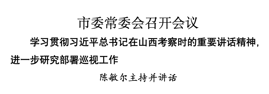 本報(bào)訊(記者 于春灃 劉國棟)7月13日,市委常委會召開會議,學(xué)習(xí)貫徹習(xí)近平總書記在山西考察時(shí)的重要講話精神,進(jìn)一步研究部署巡視工作。市委書記陳敏爾主持會議并講話。
