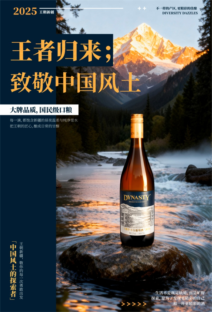 王朝半干白葡萄酒(河谷)(2025)源自北緯44°天山北麓“黃金產(chǎn)區(qū)”。該產(chǎn)區(qū)依托充足日照與顯著的晝夜溫差,為葡萄積累了飽滿的風(fēng)味物質(zhì)。這款酒融合了王朝40余年的精湛釀造技藝,呈澄澈淺金黃色澤,散發(fā)著白桃、柑橘的鮮活果香,伴隨淡淡花香與礦物質(zhì)感。入口甜酸平衡,酒體輕盈順滑,余味干凈清爽,盡顯雅致風(fēng)格,精準(zhǔn)傳遞出中國風(fēng)土的獨特魅力。其兼具傳統(tǒng)底蘊與年輕化表達的特點,不僅贏得了大學(xué)生評委對風(fēng)味適配度的認(rèn)可,更獲得了專家評審對風(fēng)土詮釋力的高度評價。